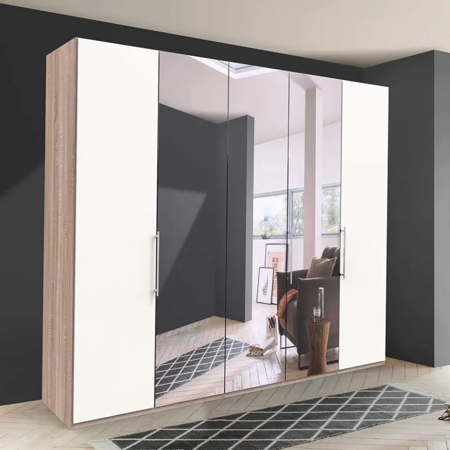 - Attraktiver Kleiderschrank in Weiß und Eiche Sägerau