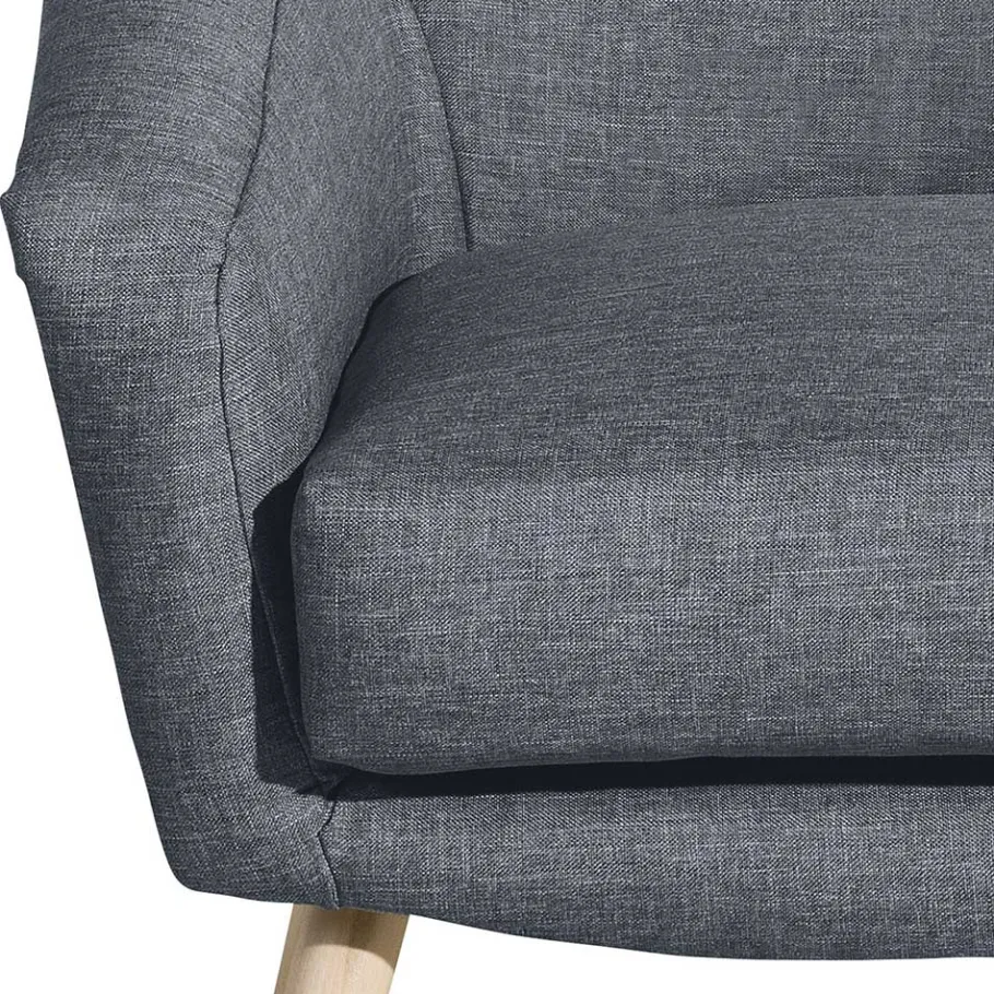 Das tragende Untergestell aus Holzwerkstoff und Holz bietet solide Stabilität, während die Gurtfederung und die bequeme Schaumstoffpolsterung für einen unvergleichlichen Sitzkomfort sorgen. Der robuste Bezug aus 100 % Polyester Flachgewebe in einem charmanten Blauton vereint Strapazierfähigkeit mit ansprechendem Design.