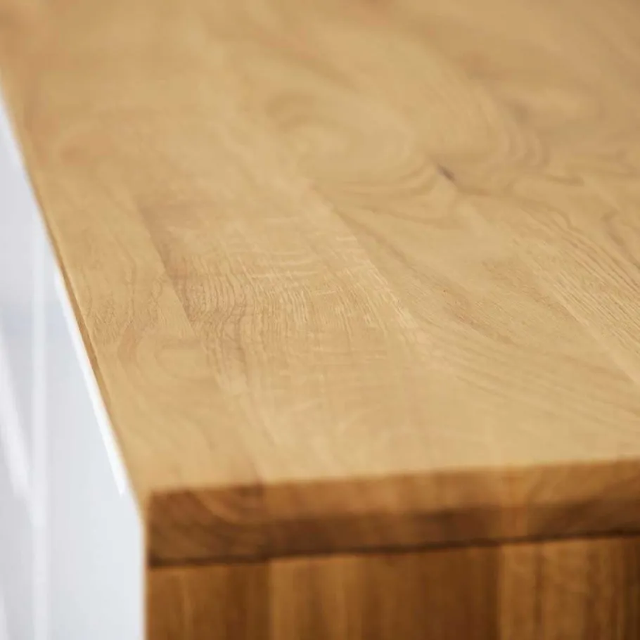 - Holzoberfläche natürlich geölt, Stabverleimung, Fronten pflegeleicht weiß lackiert
