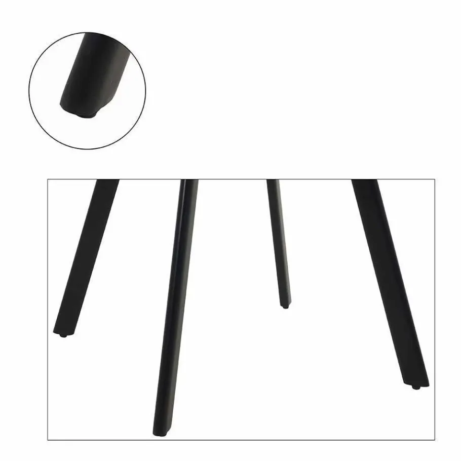 Starke Kontraste und warme Töne prägen die Ausstrahlung dieser Sitzgruppe. Die tiefbraunen Samtbezüge der Stühle bringen Behaglichkeit in den Raum und setzen einen harmonischen Akzent zum walnussbraunen Ton der Tischplatte, deren Maserung lebendig und einzigartig wirkt. In Kombination mit den schwarz pulverbeschichteten und lackierten Metallgestellen entsteht ein modernes, kraftvolles Gesamtbild, das sowohl zu klassischen als auch modernen Interieurs passt. Diese durchdachte Farbkombination sorgt nicht nur für einen stilvollen Look, sondern unterstützt auch die Langlebigkeit der Möbel – denn dunkle Töne sind nicht nur edel, sondern auch pflegeleicht.
