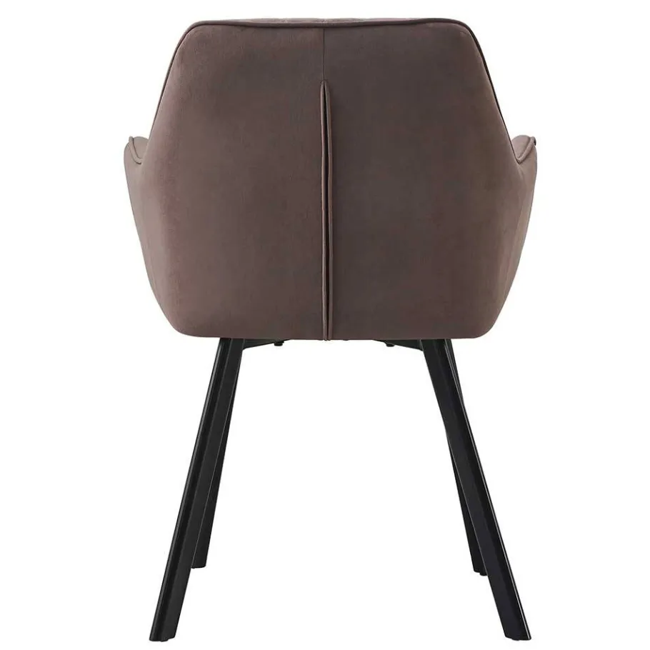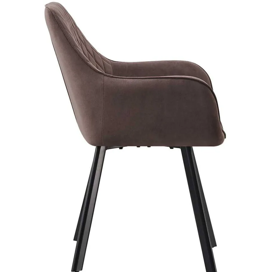 Leicht ausgestellte Armlehnen mit einer Höhe von 63 cm unterstützen eine entspannte Sitzhaltung – perfekt für ausgedehnte Abendessen oder gemütliche Runden mit Freunden. Die Stuhlmaße überzeugen mit einer Sitzhöhe von 46 cm, einer Sitzbreite von 41 cm sowie einer Sitztiefe von 42 cm – Maße, die ein bequemes, sicheres Sitzen ermöglichen. Für zusätzliche Stabilität sorgt das abgeschrägte Vierfußgestell aus pulverbeschichtetem Metall. Diese Formgebung macht die Stühle besonders standfest und verleiht ihnen zugleich eine moderne, dynamische Silhouette.