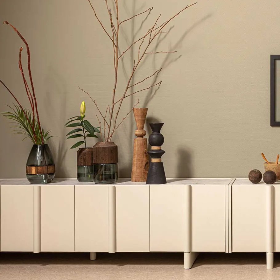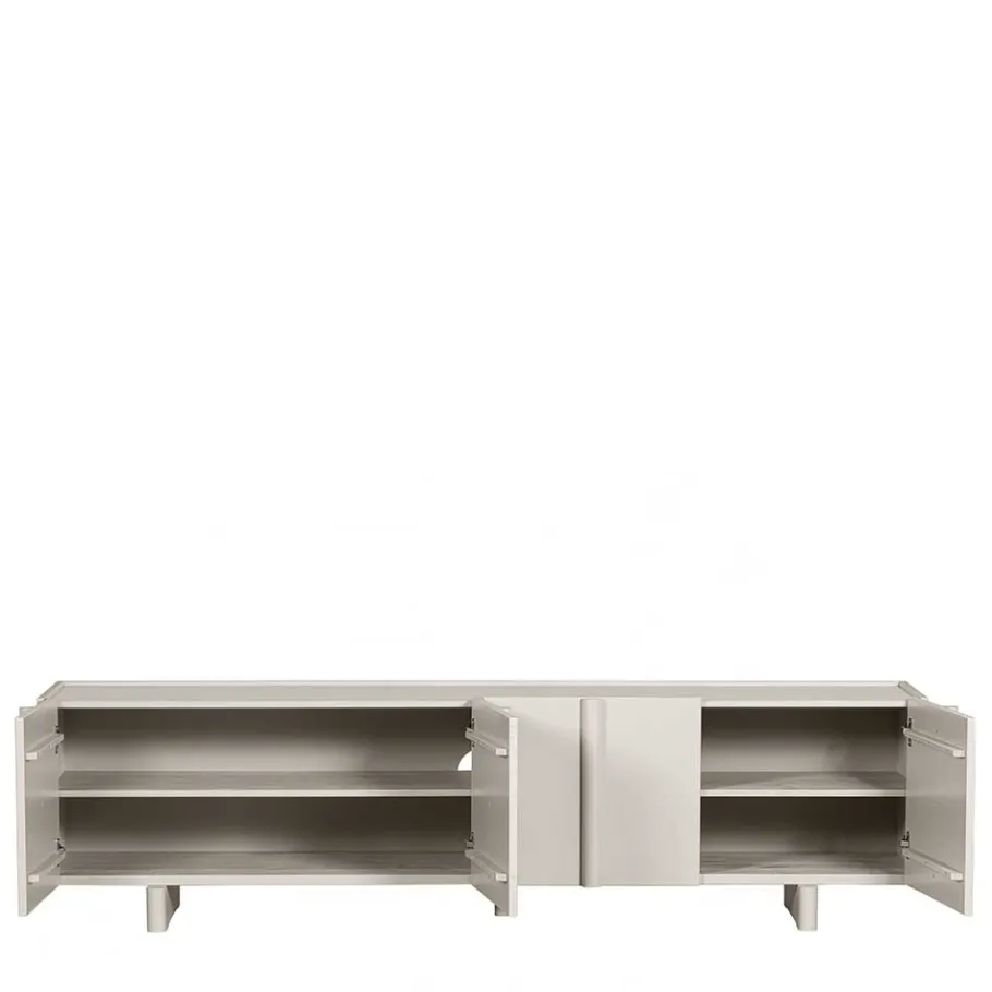 Mit vier Türen, ausgestattet mit Metallbeschlägen, und inneren Einlegeböden bietet das „Glamoure“ TV Board viel Stauraum für Ihre Multimedia-Geräte, DVDs oder andere Wohnaccessoires. Die durchdachte Konstruktion ermöglicht eine geordnete Aufbewahrung und sorgt für eine aufgeräumte Wohnatmosphäre.