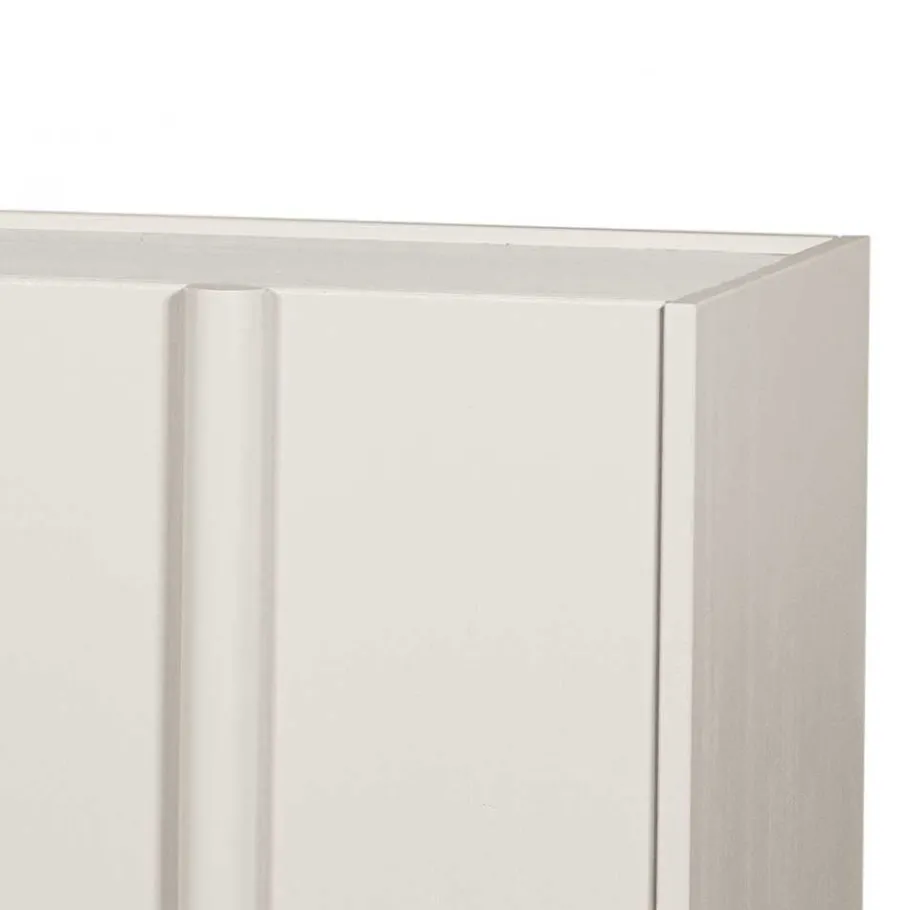 Das TV Board besteht aus Kiefer Massivholz und hochwertigem Holzwerkstoff. Auf stabilen Wangen stehend, bietet es nicht nur ein ästhetisches Erscheinungsbild, sondern auch eine solide Basis. Die Oberflächen sind sorgfältig in Hellgrau lackiert, was dem Möbelstück eine besonders edle Note verleiht.