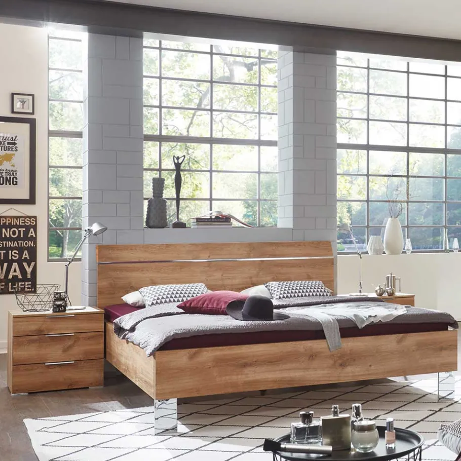 - Trendstarkes Bett in Plankeneiche Holzoptik