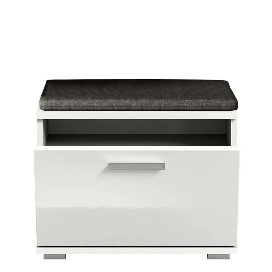Dieses Möbelset bietet Ihnen nicht nur Design, sondern auch jede Menge praktischen Stauraum. Die Bank ist mit einer praktischen Klappe ausgestattet, hinter der sich zusätzlicher Stauraum für Ihre Schuhe verbirgt. Der Korpus der Bank ist mit langlebigen Metallbeschlägen versehen, die sich auch nach jahrelangem Gebrauch zuverlässig öffnen und schließen lassen. Besonders hervorzuheben ist die optionale Sitzauflage mit einem Bezug aus 100 % Polyester. Dieses Material ist nicht nur besonders pflegeleicht, sondern auch äußerst strapazierfähig und langlebig. Die Schaumstoffpolsterung sorgt für zusätzlichen Komfort und ermöglicht Ihnen eine bequeme Sitzgelegenheit, sei es beim Anziehen Ihrer Schuhe oder beim schnellen Ausruhen. Die Bank hat eine Sitzhöhe von ca. 40 cm ohne Kissen und ca. 45 cm mit Kissen, während die Sitztiefe mit 37 cm ausreichend Platz für komfortables Sitzen bietet. Zusätzlich steht die Bank auf stabilen, silberfarbigen Kunststoff-Füßen, die ihr modernes Aussehen abrunden.