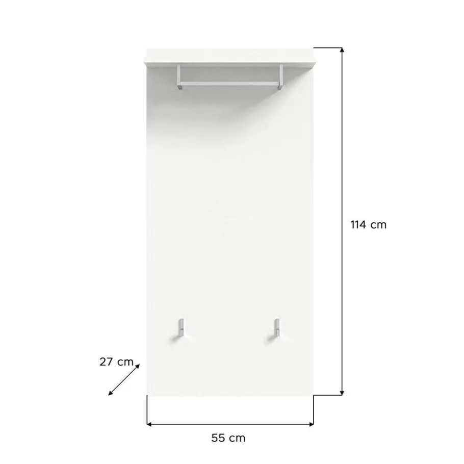 Das Paneel in diesem Set bietet ebenfalls viel Platz für Ihre Kleidung und Accessoires. Die durchgehende Rückwand sorgt für Stabilität, während die Hutablage aus Metall Ihnen zusätzlichen Stauraum für Hüte und Mützen bietet. Die Kleiderstange aus Metall gibt Ihnen die Möglichkeit, Jacken und Mäntel bequem aufzuhängen. Zwei Metall-Kleiderhaken unterhalb der Kleiderstange erweitern den Stauraum weiter. Das Paneel kann platzsparend und praktisch an der Wand montiert werden, sodass es sich perfekt für kleinere Eingangsbereiche eignet.