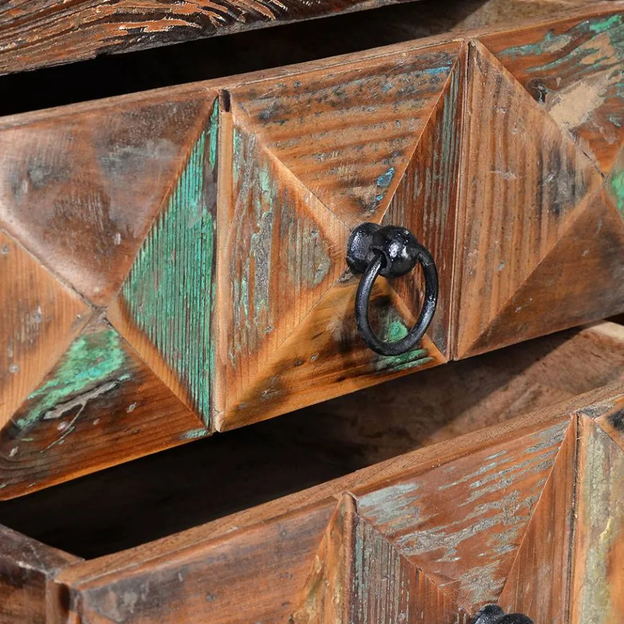 Das Herzstück dieses Möbelstücks bildet das massive Recyclingholz. Dieses Material ist nicht nur umweltfreundlich, sondern auch besonders robust und langlebig. Recyclingholz trägt durch seine Wiederverwendung aktiv zum Umweltschutz bei und verleiht jedem Möbelstück einen einzigartigen Charakter.