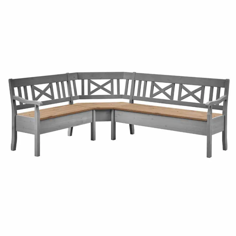 - Großzügige Eckbank in Grau und Kiefer laugenfarbig