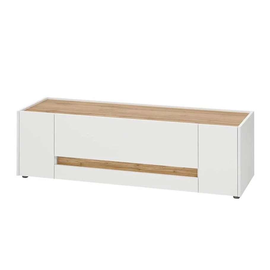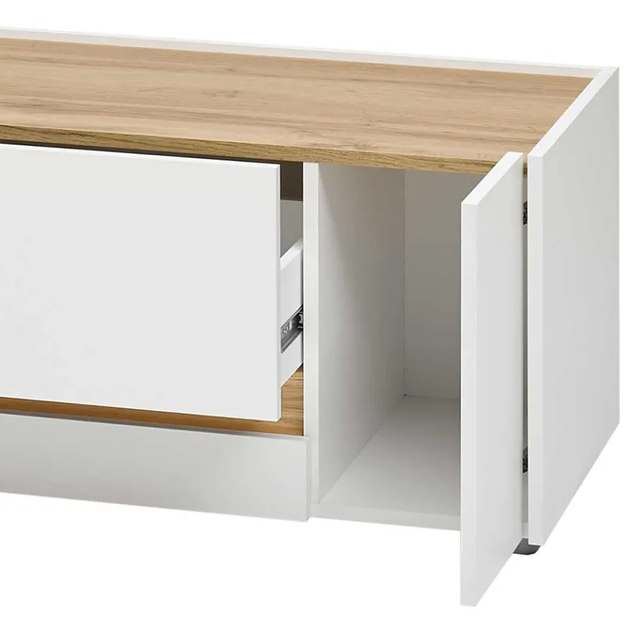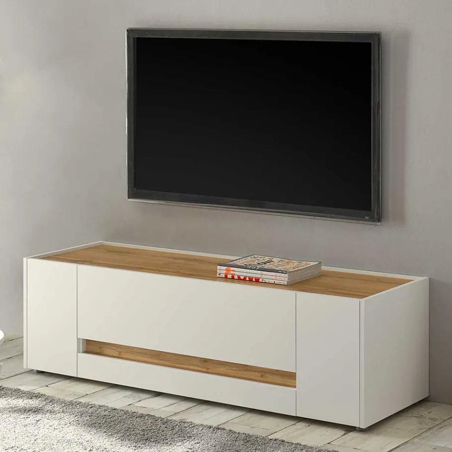- Kompaktes TV-Lowboard in Weiß und Wildeichefarben