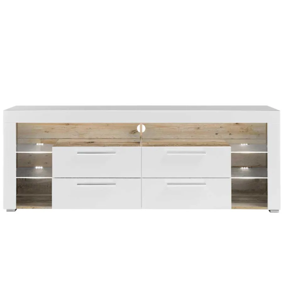- Stylisches TV-Board in Weiß und Altholzoptik