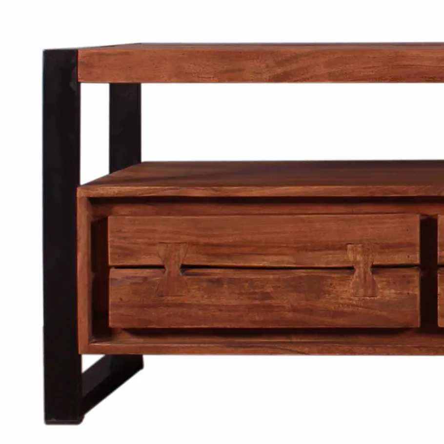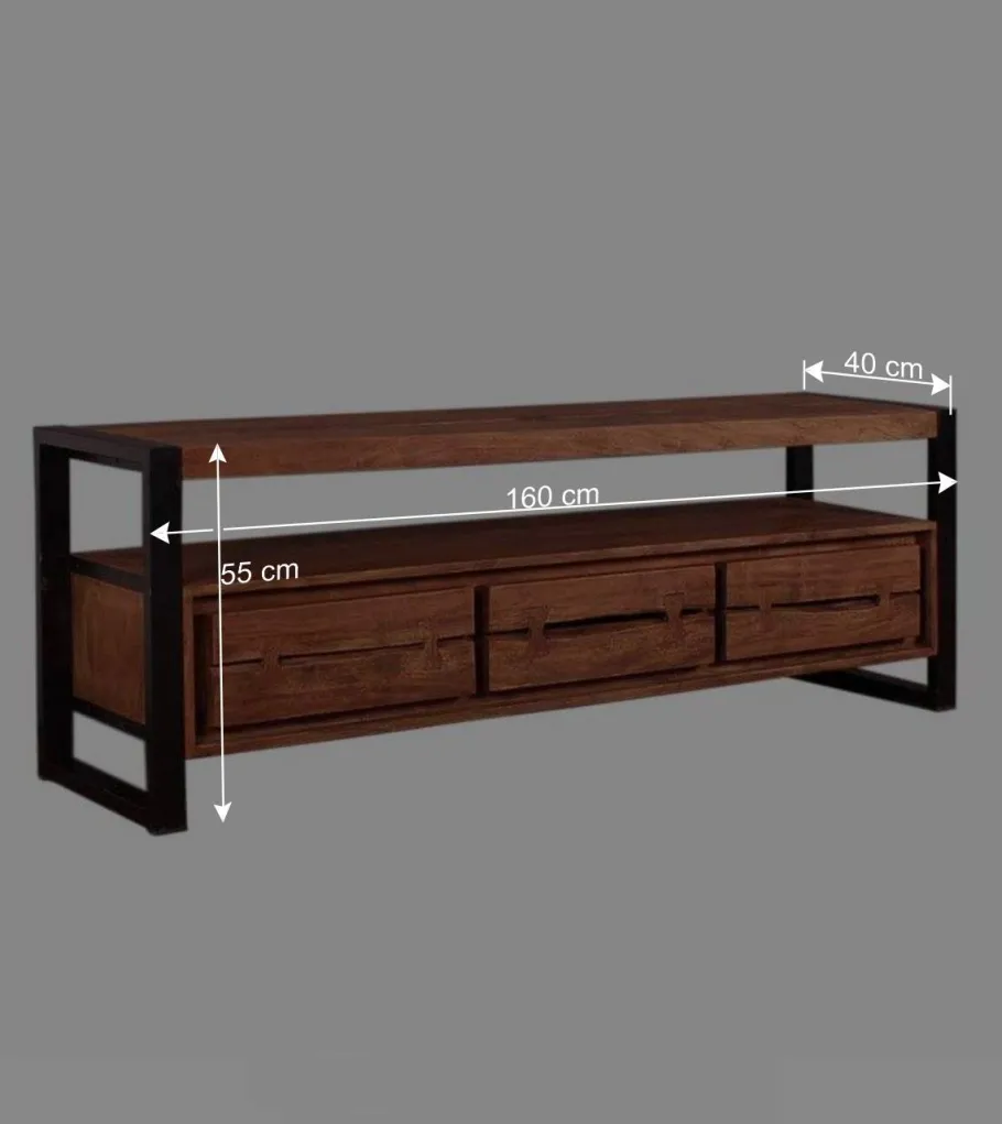 Mit einer Breite von 160 cm, einer Höhe von 55 cm und einer Tiefe von 40 cm bietet „Smantana“ reichlich Platz für all Ihre Mediengeräte und Accessoires. Drei geräumige Schubkästen, gefertigt mit traditionellen Schwalbenschwanz-Verbindungen, unterstreichen die handwerkliche Qualität und bieten praktischen Stauraum. Das offene Gerätefach ermöglicht eine unkomplizierte Kabelführung und hält Ihre Unterhaltungselektronik stets griffbereit.