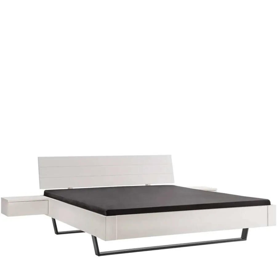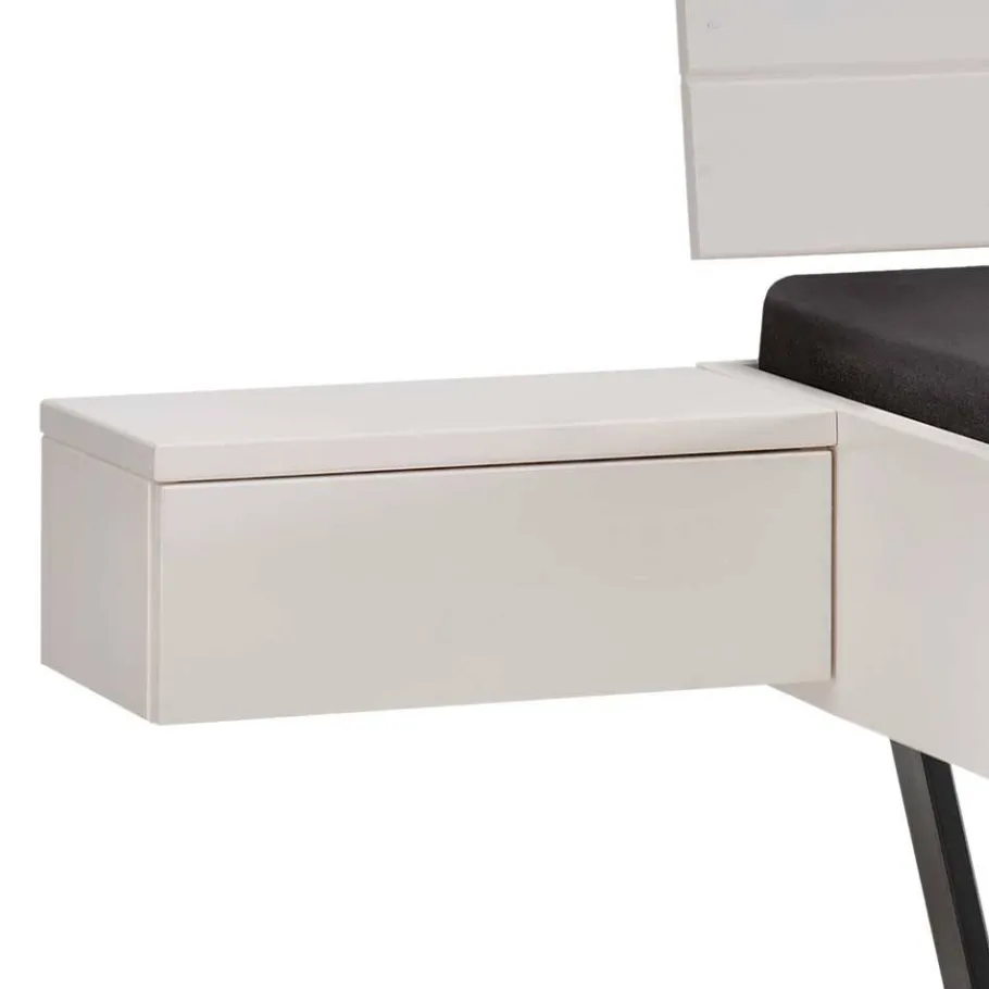 Das Bett „Lardias“ bietet nicht nur optische Anreize, sondern überzeugt auch durch seine durchdachten Funktionen. Mit einer Einlegetiefe von 18 cm ist es für verschiedene Lattenroste und Matratzenarten geeignet. Die Einstiegshöhe von 43 cm ohne Matratzenüberstand gewährleistet einen bequemen Ein- und Ausstieg. Der Abstand vom Seitenteil zum Boden beträgt 22 cm, was ausreichend Platz für eine angenehme Bodenfreiheit schafft und gleichzeitig den minimalistischen Look unterstreicht. Zudem kann das Bett auf Wunsch in allen vier verfügbaren Größen – 140×200, 160×200, 180×200 und 200×200 cm – mit passenden Nachtkommoden bestellt werden. Diese dezent gestalteten Kommoden, die optisch fast zu schweben scheinen, werden direkt am Bettrahmen angebracht und ergänzen das Ensemble harmonisch.