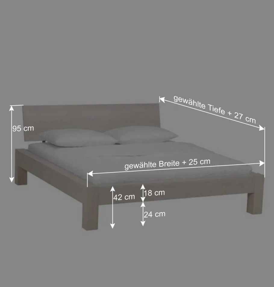 Mit einem Bodenabstand von 24 cm ermöglicht das Bett eine einfache Reinigung und optimale Luftzirkulation, was die Hygiene im Schlafbereich erhöht und für ein angenehmes Schlafklima sorgt. Die schlichte Eleganz des Kopfteils mit seiner attraktiven Holzmaserung fügt sich nahtlos in jedes Einrichtungskonzept ein.