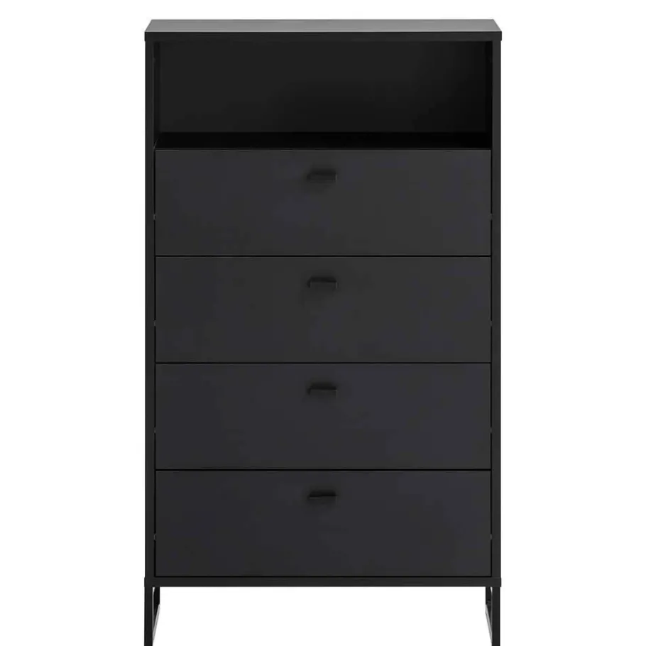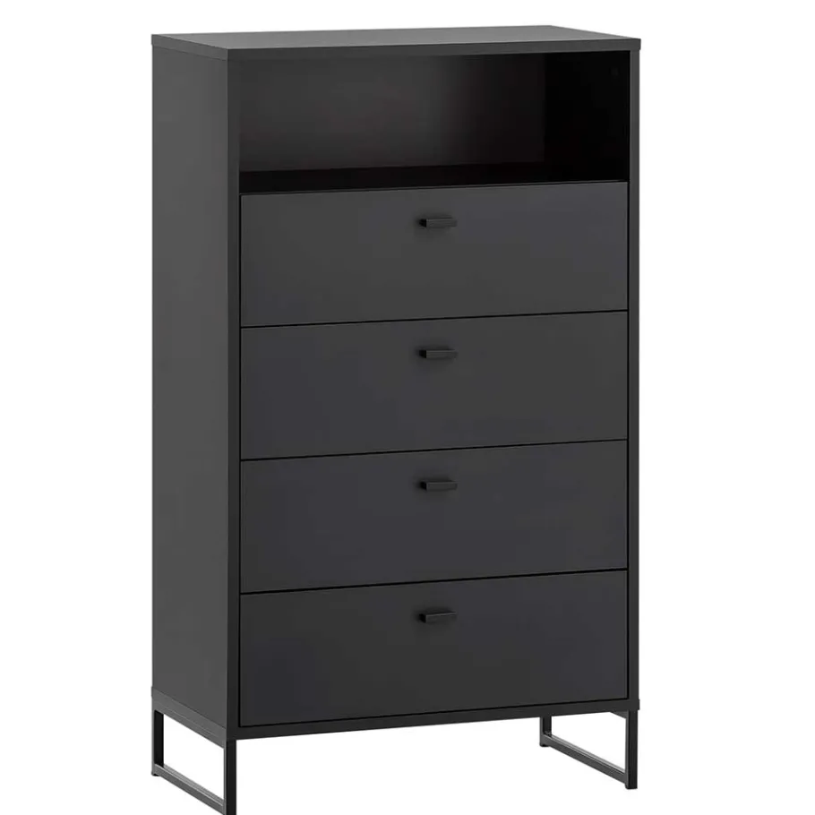 - Vier Schubladen mit Teilauszug, oben ein offenes Fach