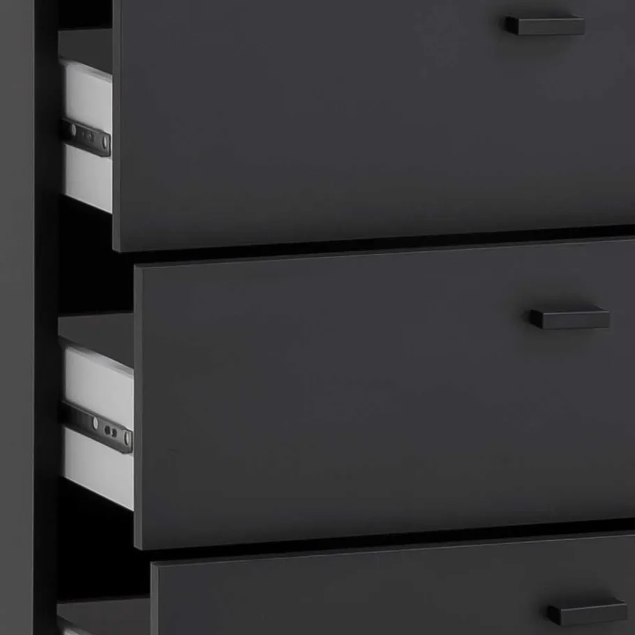 Die Basis des Sets bilden hochwertige Spanplatten, die für Stabilität und Langlebigkeit stehen. Sie sind besonders formbeständig und dabei deutlich leichter als Massivholz, was den Transport und Aufbau erleichtert. Die Oberfläche ist mit einer mattschwarzen Melaminbeschichtung veredelt – das macht die Möbel besonders pflegeleicht, kratzfest und unempfindlich gegenüber Feuchtigkeit. Ein feuchtes Tuch reicht aus, um die Flächen mühelos sauber zu halten.