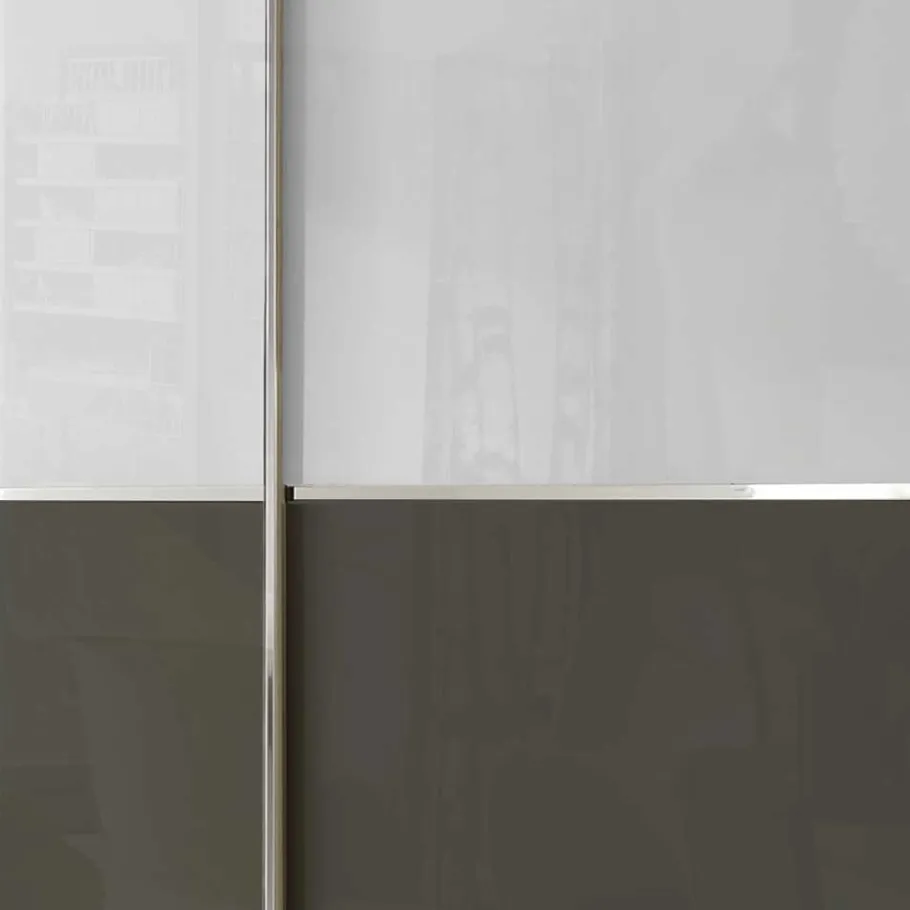 Gefertigt aus solider Spanplatte, präsentiert sich „Genre“ nicht nur als langlebig, sondern auch als wahrer Hingucker. Die Oberfläche der Türen ist mit Glas in Braun und Weiß beschichtet, während der Korpus strapazierfähig in Braun foliert ist. Diese Folierung bietet den Vorteil, dass sie robust und leicht zu reinigen ist, was die Langlebigkeit des Schranks gewährleistet. Die zweifarbige Optik fügt sich nahtlos in jedes Raumkonzept ein.