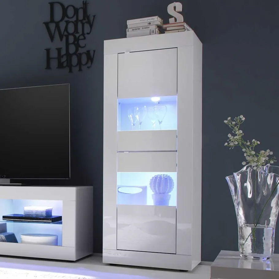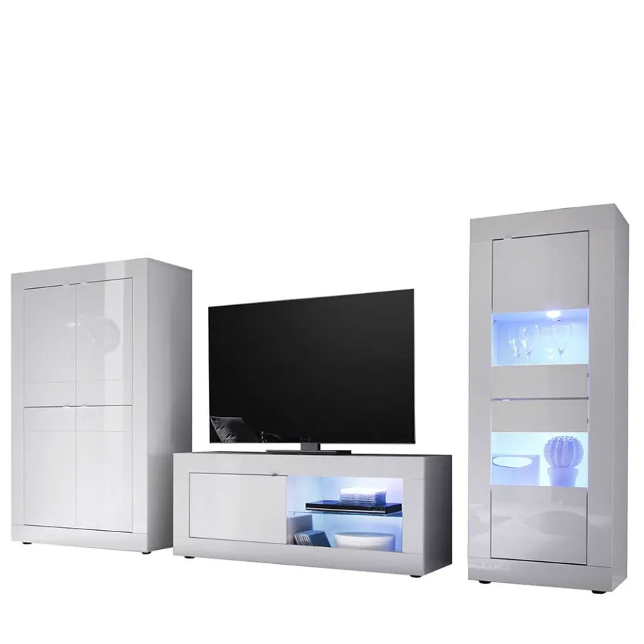 - Schicke Wohnwand in Hochglanz Weiß