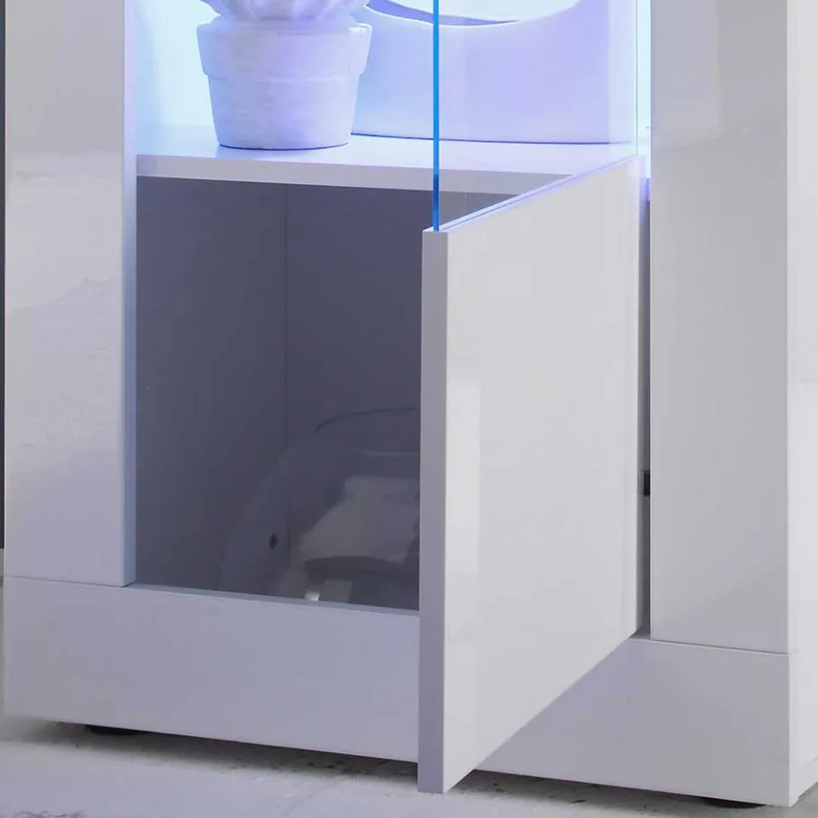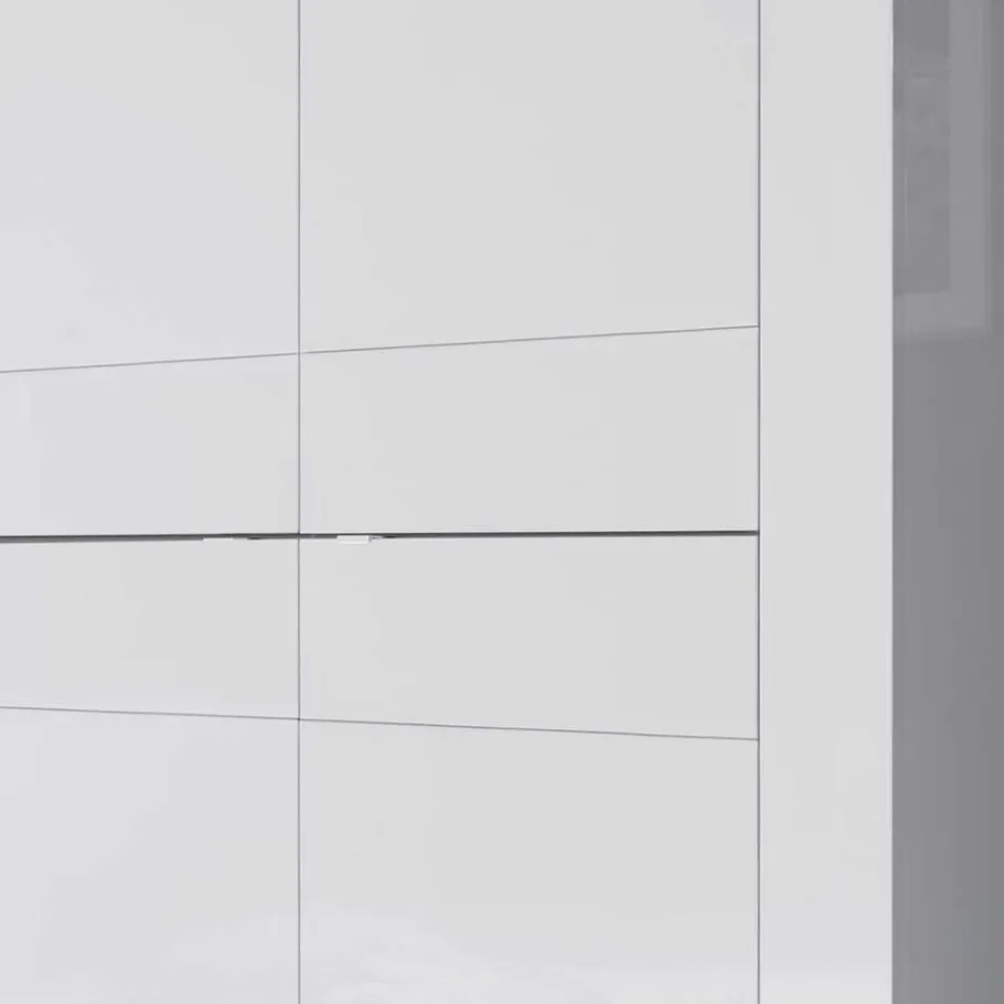 Das brillante Hochglanz-Finish sorgt für einen anspruchsvollen Look, der sofort ins Auge fällt, während die eleganten Metallgriffe einen schönen Kontrast zur makellosen weißen Oberfläche bilden. Die ansprechende Rahmenoptik ergänzt das Gesamtbild und verleiht jedem Möbelstück eine individuelle Note.