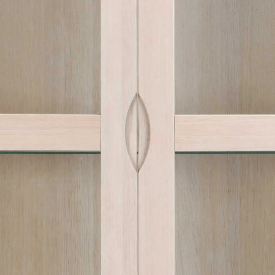 Die Vitrine „Pessoa I“ wird aus sorgfältig ausgewählten Materialien gefertigt, um Ihnen ein Möbelstück von höchster Qualität zu bieten. Der Korpus ist aus MDF (Mitteldichte Holzfaserplatte) gefertigt, was für Stabilität und Langlebigkeit sorgt. Die Oberflächen des Korpus und der Front sind mit echtem Eichenholzfurnier in White Wash Optik behandelt. Das bedeutet, dass die natürliche Schönheit des Holzes bewahrt bleibt und gleichzeitig eine leichte, helle Optik entsteht. Dieser Prozess wird mit Hartwachsöl abgerundet, um die Oberfläche zu schützen und ihr einen sanften Glanz zu verleihen.