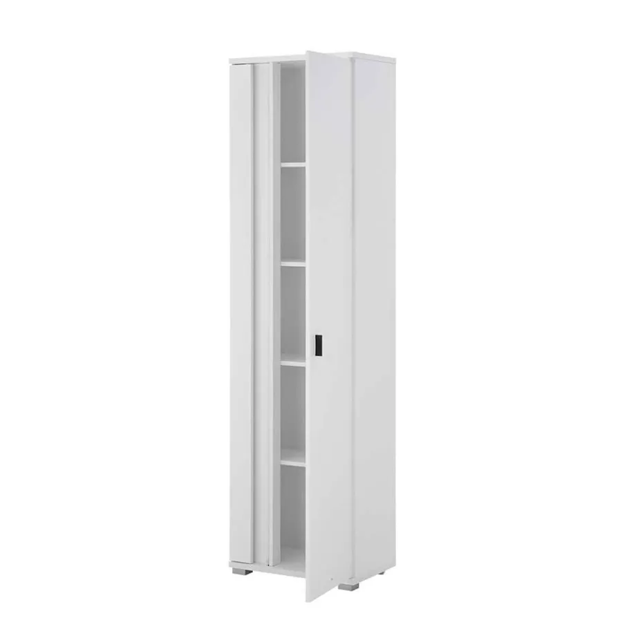 - Der Schrank (55x200x35 cm): Mit einer Tür und drei verstellbaren Einlegeböden sowie einem Konstruktionsboden bietet er großzügigen Stauraum für Ihre persönlichen Gegenstände. Türen mit gedämpften Metallbeschlägen sorgen für ein leises und sanftes Schließen.