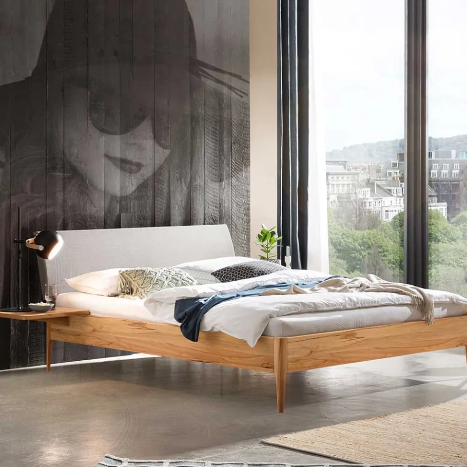 Erleben Sie mit dem Holzbett „Liancos“ eine Kombination aus modernem Design und der natürlichen Wärme von massivem Wildbuchenholz. Jedes Bett ist ein Unikat, geprägt durch die lebhafte Maserung und die natürlich geölte Oberfläche, die nicht nur die Schönheit des Holzes hervorhebt, sondern auch dessen Langlebigkeit und Widerstandsfähigkeit gegenüber alltäglichen Belastungen garantiert. Die Ölung schützt das Holz und macht es zugleich pflegeleicht, während die natürlichen Eigenschaften der Wildbuche für ein angenehmes Raumklima und eine einladende Wohlfühlatmosphäre sorgen.
