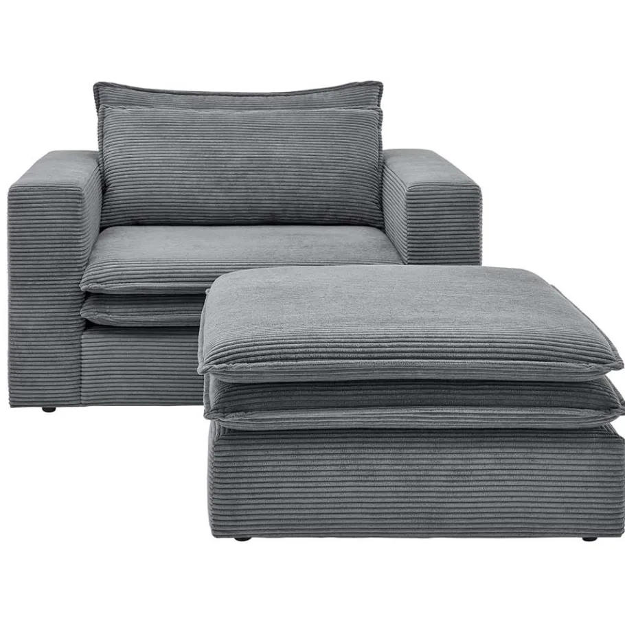 - Trendstarker Sessel mit Hocker in Anthrazit