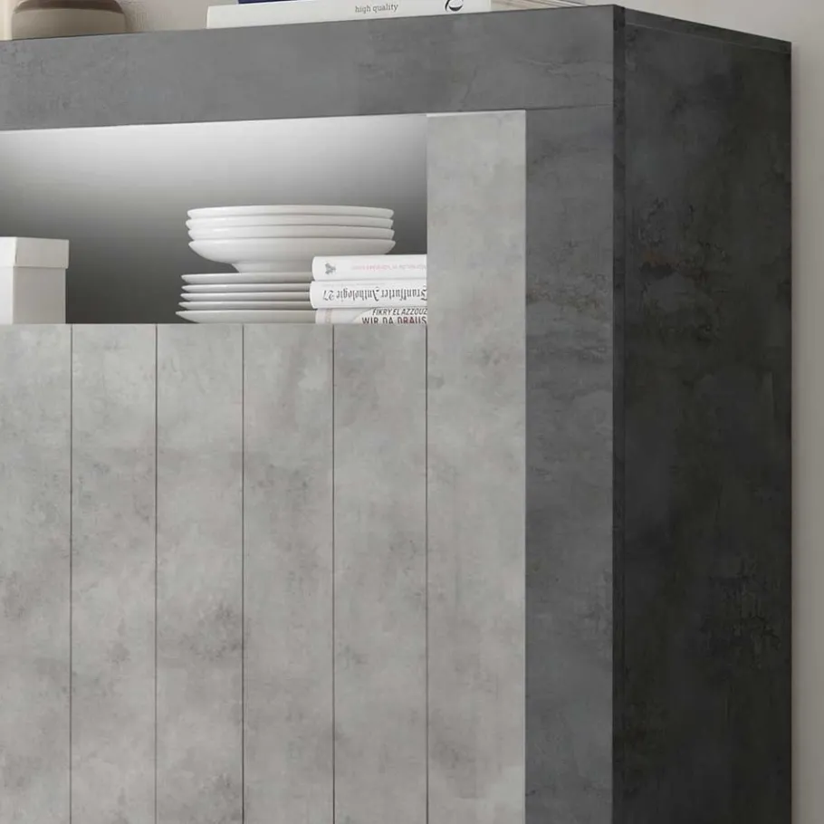 - Vielseitiges Highboard in Dunkel- und Betongrau