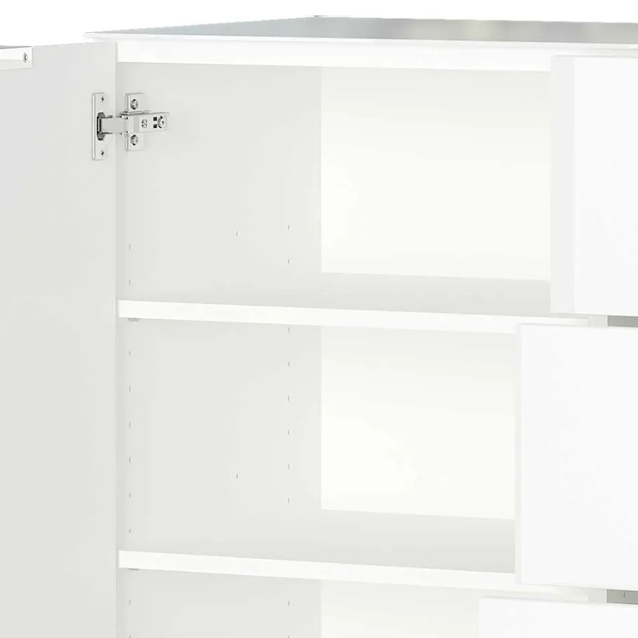 - Max. Belastbarkeit Schubladen und Einlegeböden: 10 kg, Unterboden: 15 kg, Deckplatte gleichmäßig verteilt 30 kg