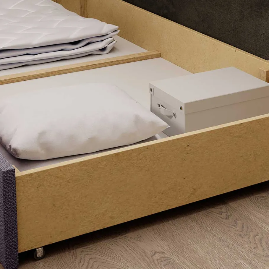 - Praktischer, integrierter Bettkasten für Decken und Kissen