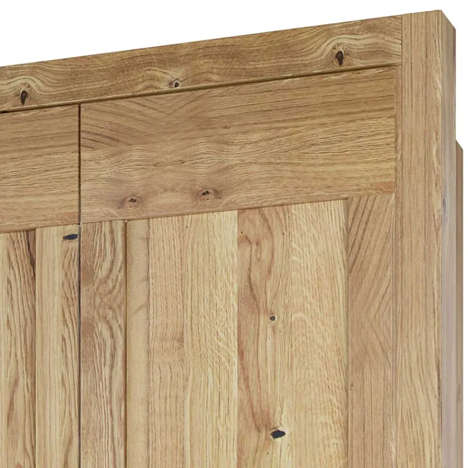 Der Kleiderschrank „Zamron“ besticht durch seine solide Konstruktion. Die Front und der Rahmen bestehen aus massiver Asteiche, während die Füllungen mit Asteiche furniert sind. Durch die Verwendung von Massivholz und Furnier, die mit hochwertigem Öl behandelt wurden, garantieren wir Ihnen nicht nur eine attraktive Optik, sondern auch eine langanhaltende Qualität. Der Korpus des Schranks ist mit einer Holzoptik foliert, die das rustikale Erscheinungsbild abrundet.