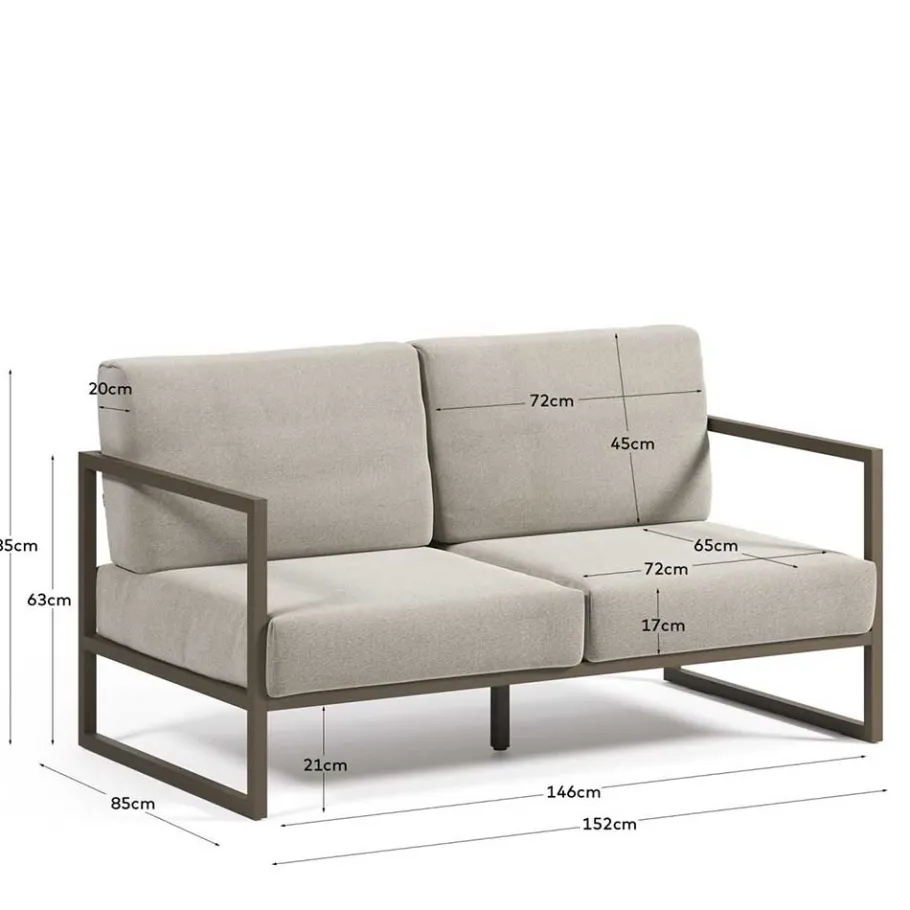 Das Untergestell des Sofas wurde aus Aluminium gefertigt – einem Material, das für seine außergewöhnliche Stabilität bei gleichzeitig geringem Gewicht bekannt ist. Aluminium ist nicht nur robust und langlebig, sondern auch besonders korrosionsbeständig, was das Sofa zu einem idealen Begleiter für den Außenbereich macht. Es hält Wind, Wetter und Sonne stand und bleibt über Jahre hinweg in Topform. Dazu kommt der Bezug aus Webstoff, der sich durch seine hohe Strapazierfähigkeit und Pflegeleichtigkeit auszeichnet. Ein unschlagbares Material, das den täglichen Belastungen problemlos standhält.