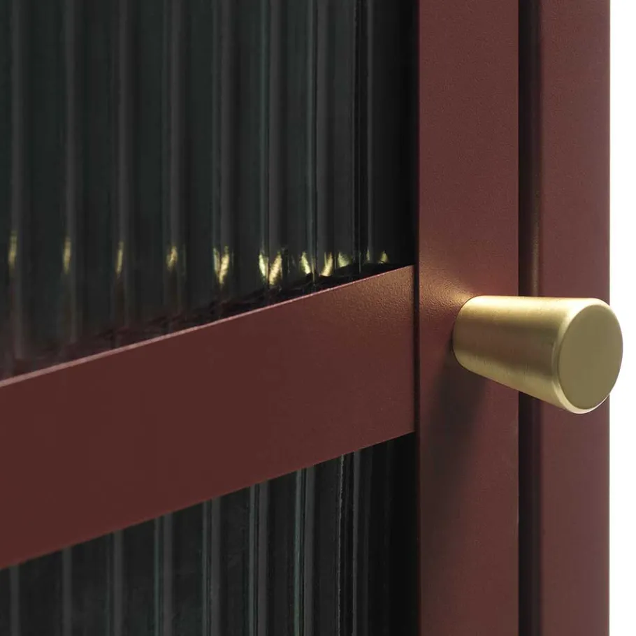 Unsere Vitrine „Enno“ wird aus hochwertigem Stahl und widerstandsfähigem Sicherheitsglas gefertigt. Die Metalloberflächen sind in einem ansprechenden Dunkelrot pulverbeschichtet, was nicht nur für eine beeindruckende Optik sorgt, sondern auch die Langlebigkeit des Materials gewährleistet. Dieses Möbelstück ist ein echtes Statement von dauerhafter Qualität und Stil.