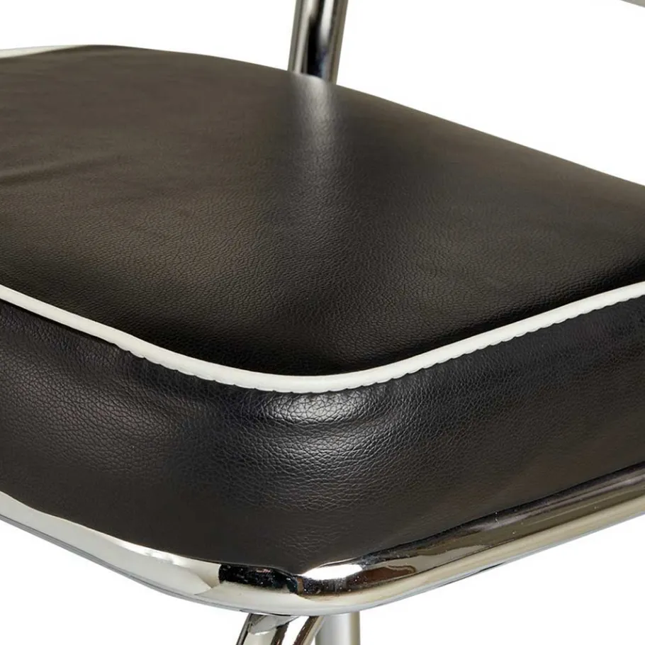 Ein außergewöhnlicher Blickfang für Küche, Esszimmer oder Wintergarten: Bistrogruppe „Barataria“ besteht aus vier stilvollen Stühlen und einem eleganten Tisch, die zusammen eine harmonische Einheit im angesagten Retrostil bilden. Dieses Ensemble vereint Nostalgie mit modernem Komfort und lädt ein zu entspannten Mahlzeiten und geselligen Stunden in stilvollem Ambiente. Die Farbkombination aus klassischem Schwarz, strahlendem Weiß und glänzendem Chrom verleiht jedem Raum eine frische, stilvolle Atmosphäre mit besonderem Flair.