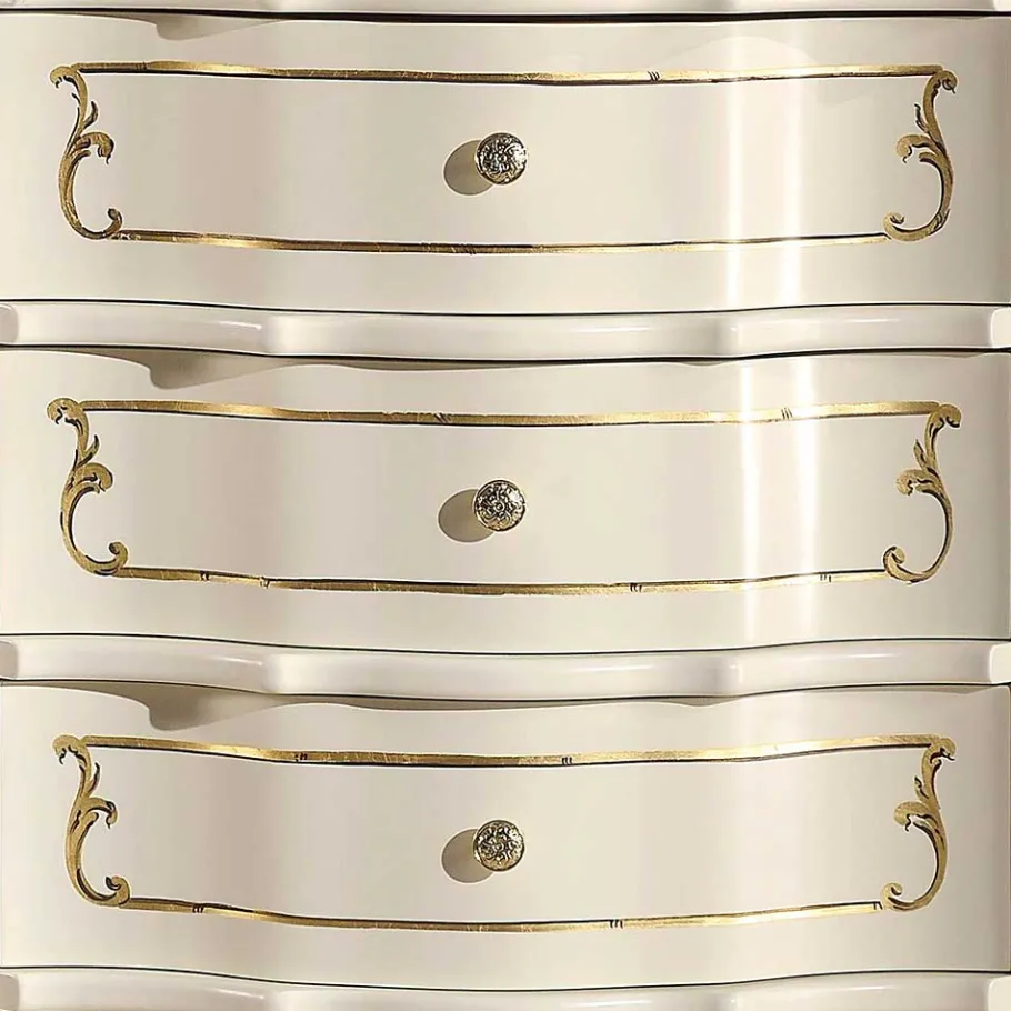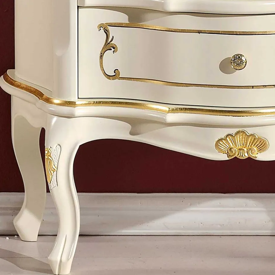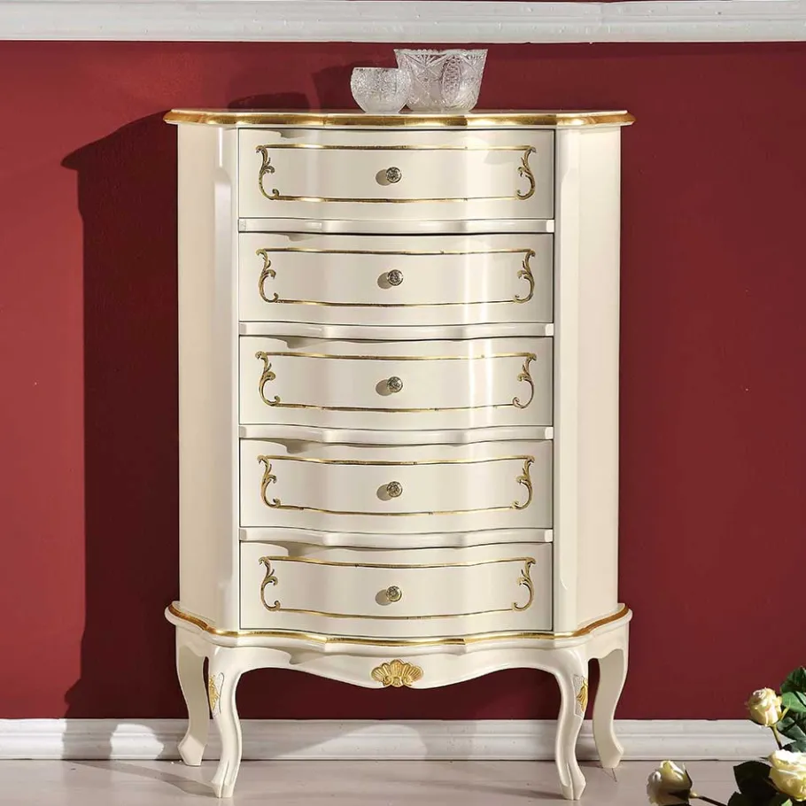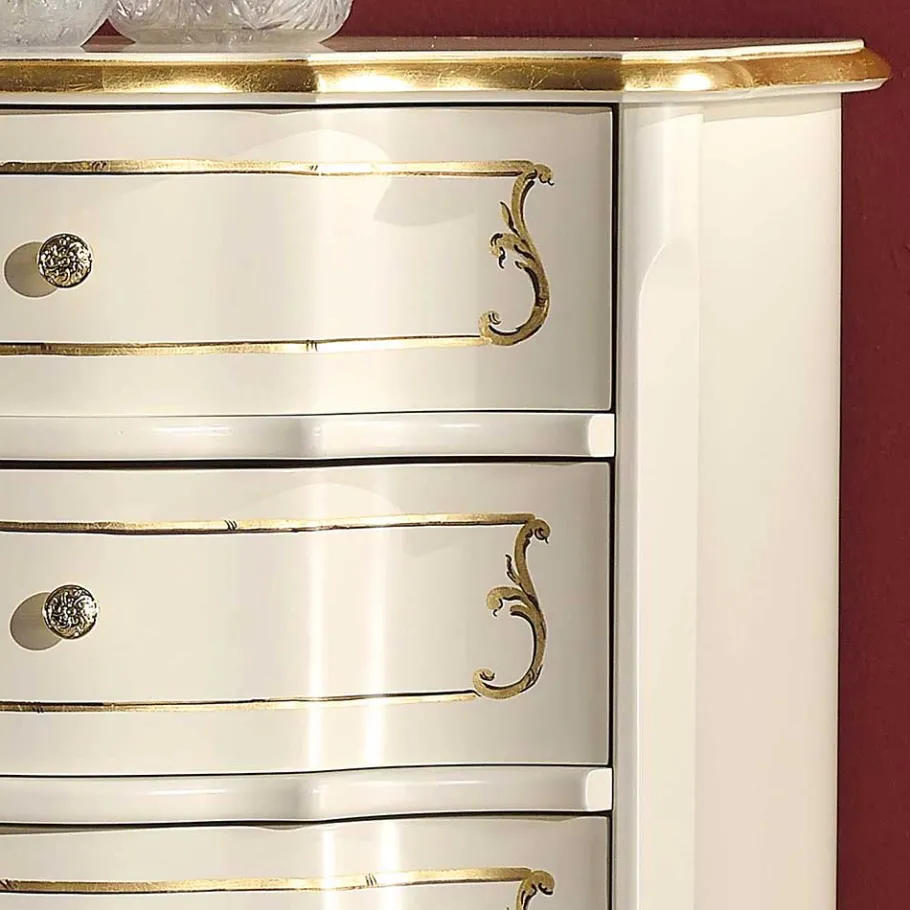 - Elegante Schubladenkommode in Weiß und Goldfarben