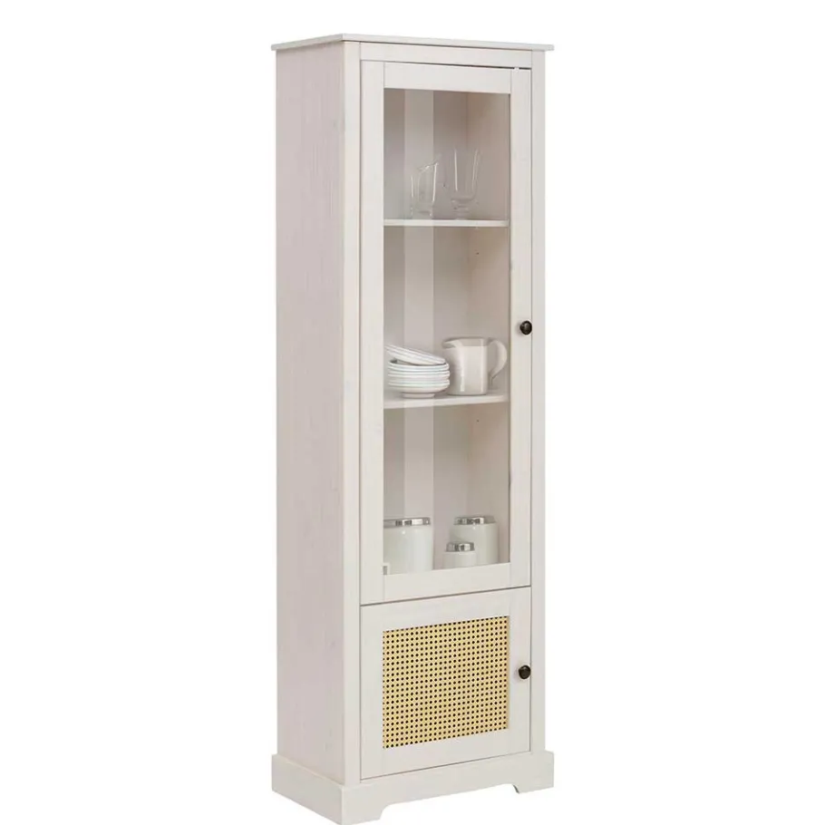 - Schlanker Vitrinenschrank in Weiß und Beige