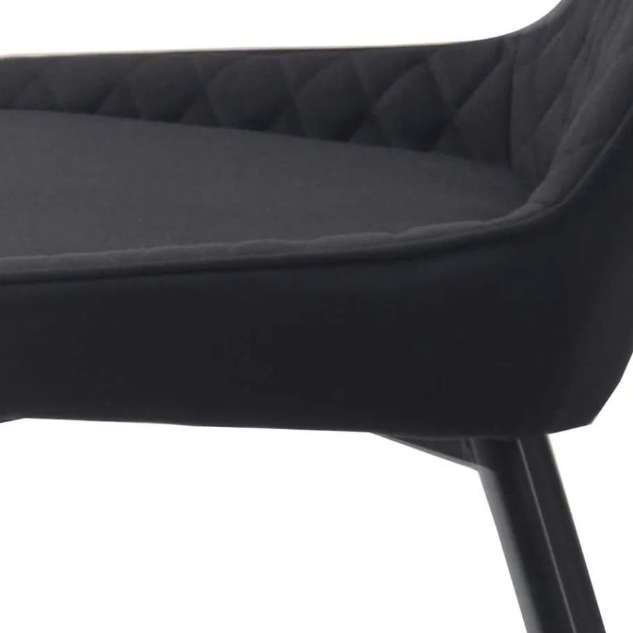 Eine ergonomisch geformte Rückenlehne mit dekorativer Rautensteppung unterstützt eine gesunde Sitzhaltung und setzt zugleich stilvolle Akzente. Besonders angenehm zeigt sich die abgerundete Vorderkante der Sitzfläche, die Druckstellen an den Oberschenkeln verhindert und für zusätzlichen Sitzkomfort sorgt. Belastbar bis zu 110 kg pro Stuhl, garantiert das robuste Vierfußgestell aus pulverbeschichtetem Metall zudem eine hohe Stabilität und Langlebigkeit im täglichen Gebrauch.
