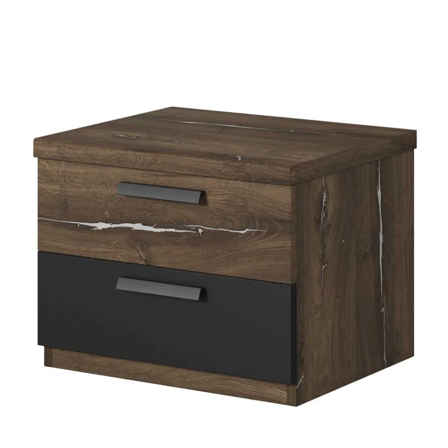 - Kompakte Nachtkommode in Eiche dunkel, Silberfarben und Schwarz