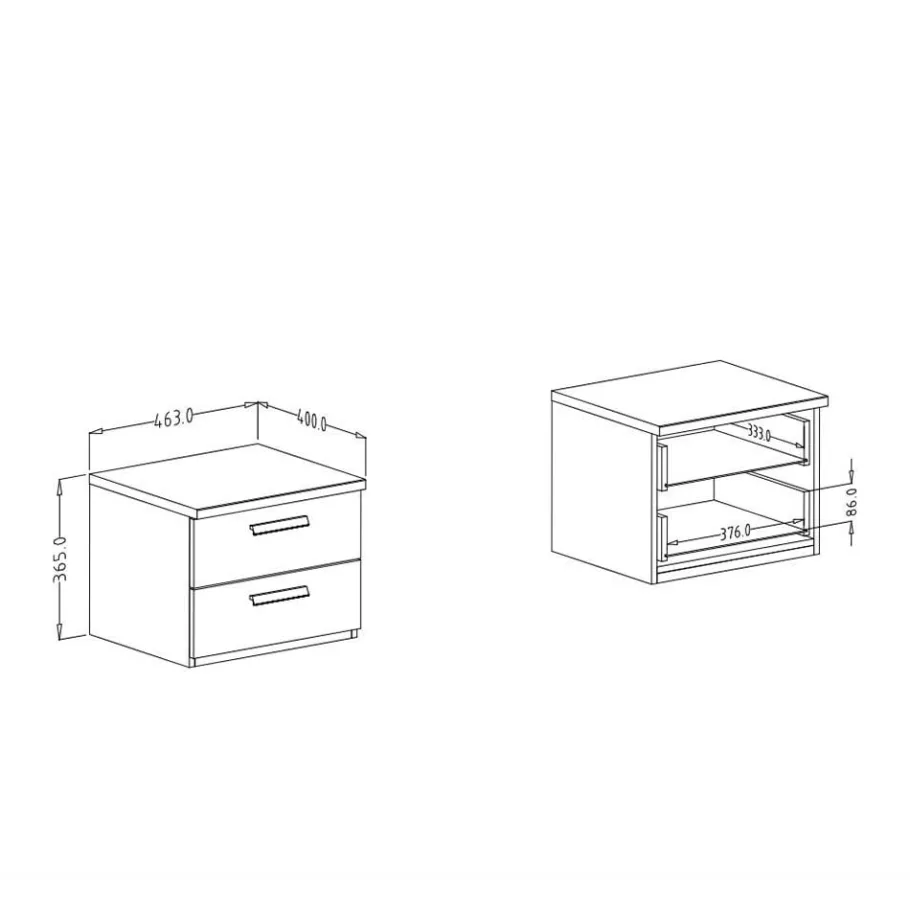 - Zwei Schubladen mit Metallauszug