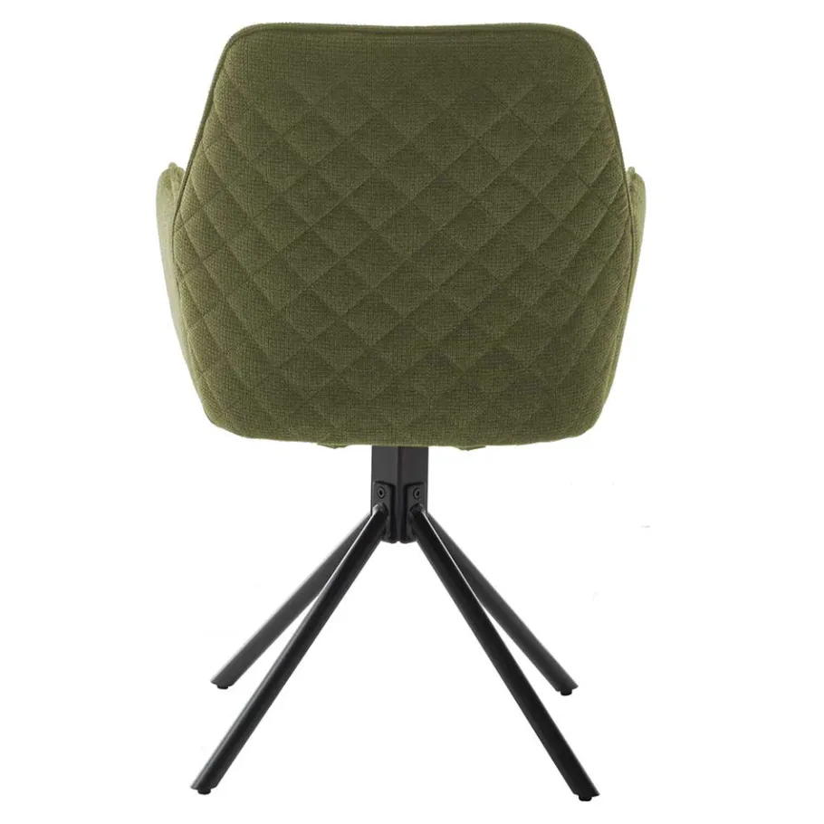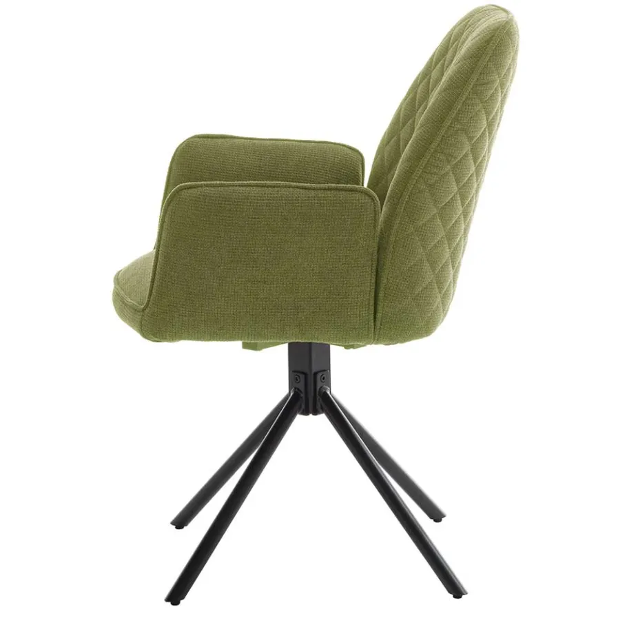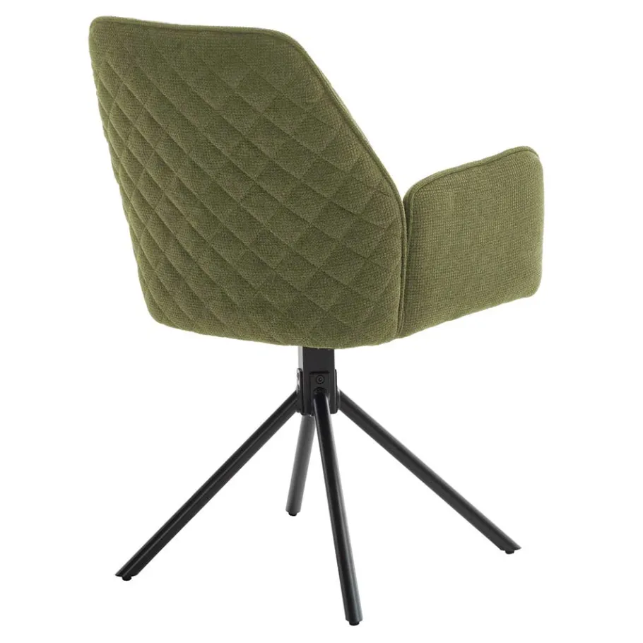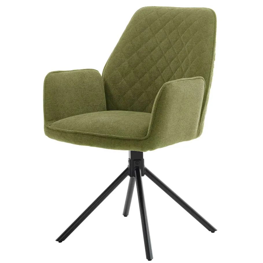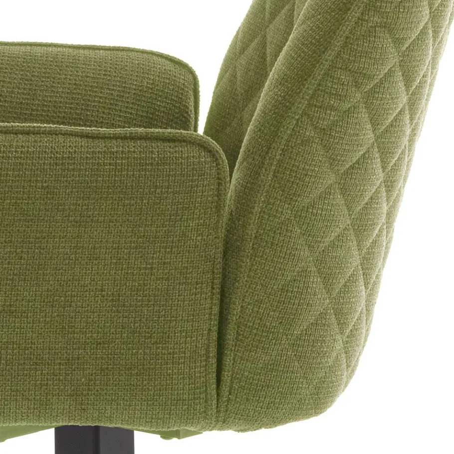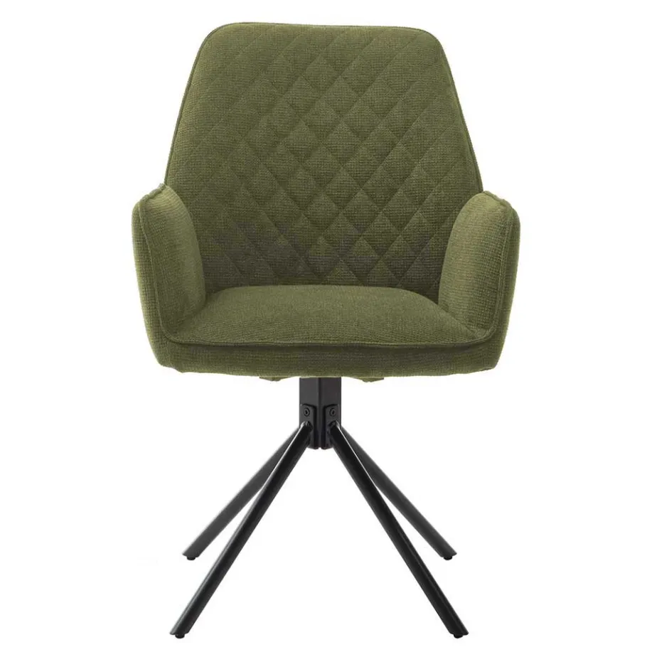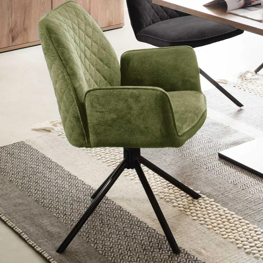 Die Maße des Stuhls – 60 cm Breite, 89 cm Höhe und 64 cm Tiefe – bieten eine komfortable Sitzgelegenheit. Mit einer Sitzhöhe von ca. 50 cm und einer Sitztiefe von 44 cm sowie einer Breite von 43 cm ist dieser Stuhl ideal, um auch längere Abende gemütlich am Esstisch zu verbringen. Die Schaumstoffpolsterung und die dekorativ in Rautenoptik gesteppte Rückenlehne erhöhen den Sitzkomfort, während die seitlich angesetzten Armlehnen zusätzliche Unterstützung bieten.