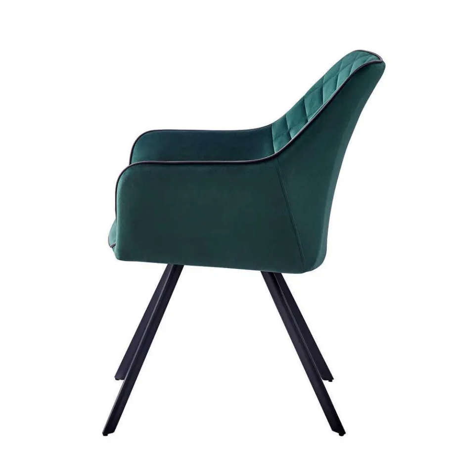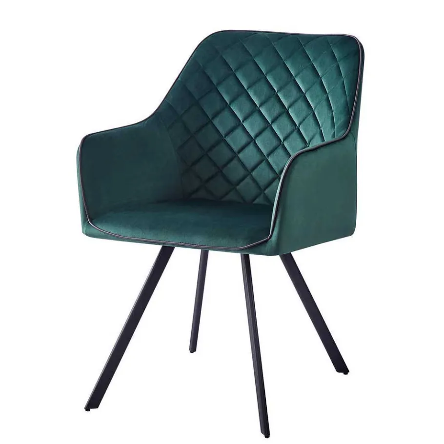 Der Stuhl begeistert nicht nur durch sein ansprechendes Design, sondern auch durch seine sorgfältige Materialwahl. Der edle Samtbezug aus 100 % Polyester sorgt für eine angenehm weiche Haptik, während die aufwendige Rautensteppung und der schwarze Keder dem Stuhl eine exklusive Note verleihen. Dank der strapazierfähigen und pflegeleichten Oberflächen bleibt das Möbelstück auch bei häufiger Nutzung lange schön. Die komfortable Schaumstoffpolsterung macht das Sitzen zu einem echten Vergnügen.