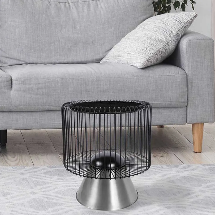 - Dekoratives Gestell mit silberfarbigem Sockel und schwarzem Drahtkorpus