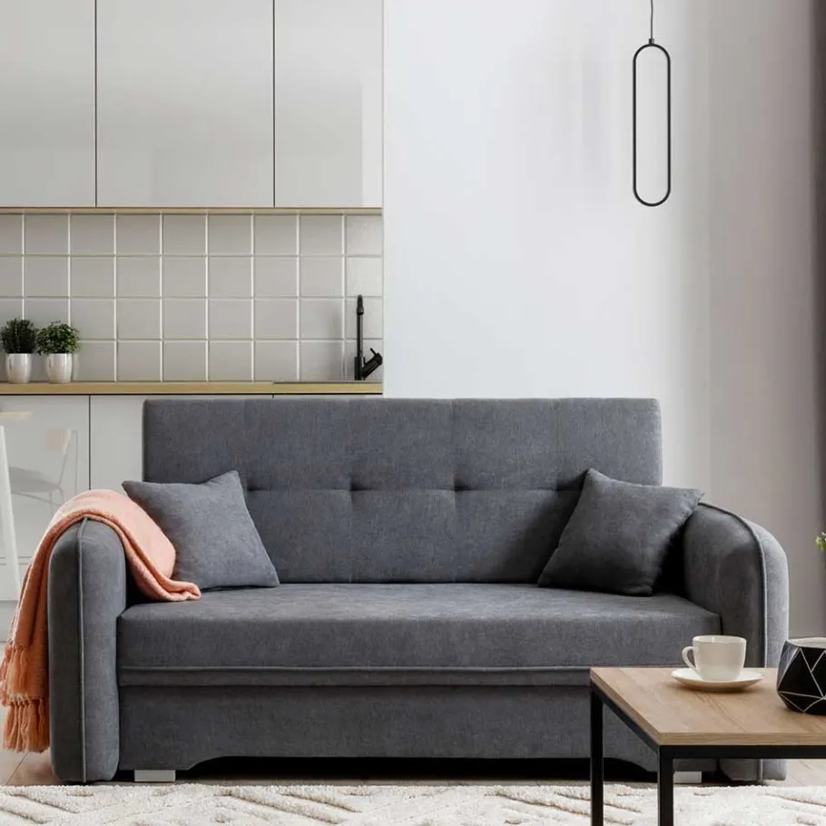 Best Bettcouch mit Federkern aus Velours Dunkelgrau – Lictona Sofas