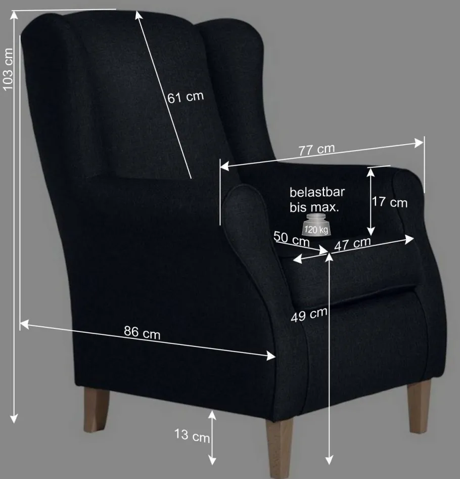 - Armlehnen mit einer Höhe innen von ca. 17 cm