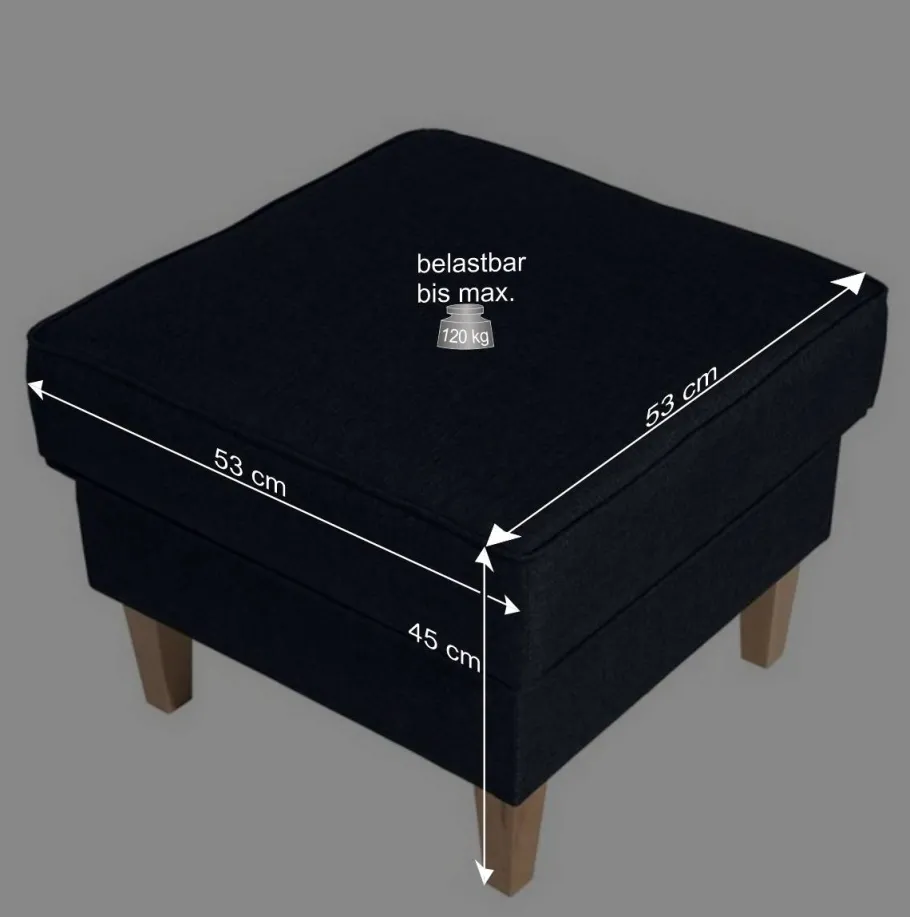 Wer das Maximum an Entspannung sucht, kann sich optional den passenden Hocker dazu bestellen. Mit seinen kompakten Maßen und der mittelfesten Schaumstoffpolsterung bietet er die ideale Ergänzung zum Sessel – für entspannte Beine und vollendete Erholung. Auch hier sorgt ein stabiles Holzgestell für zuverlässigen Halt bei bis zu 120 kg Belastung.
