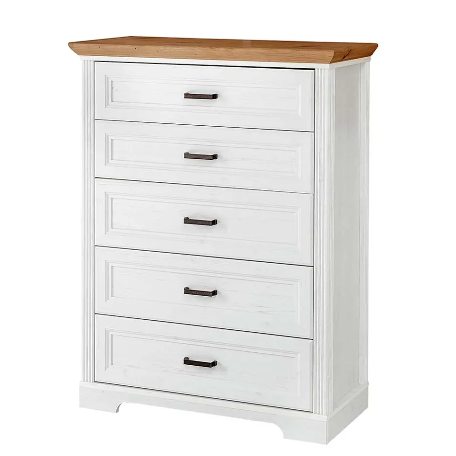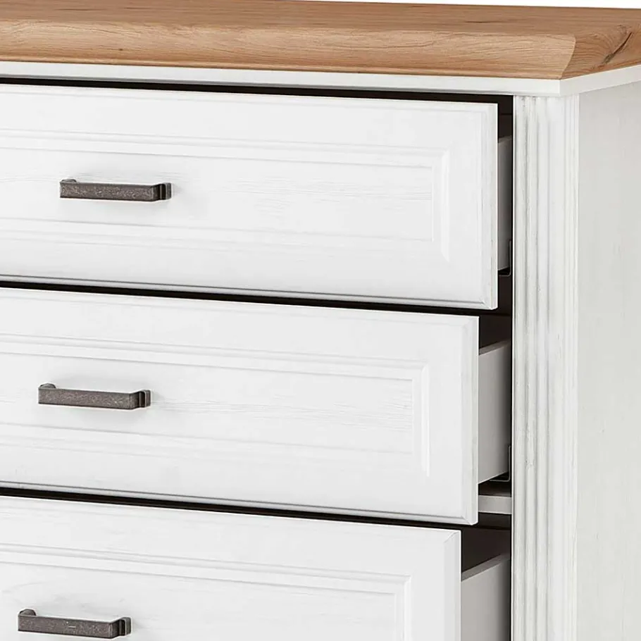 - Vielseitige Kommode in Pinie Weiß und Eichefarben