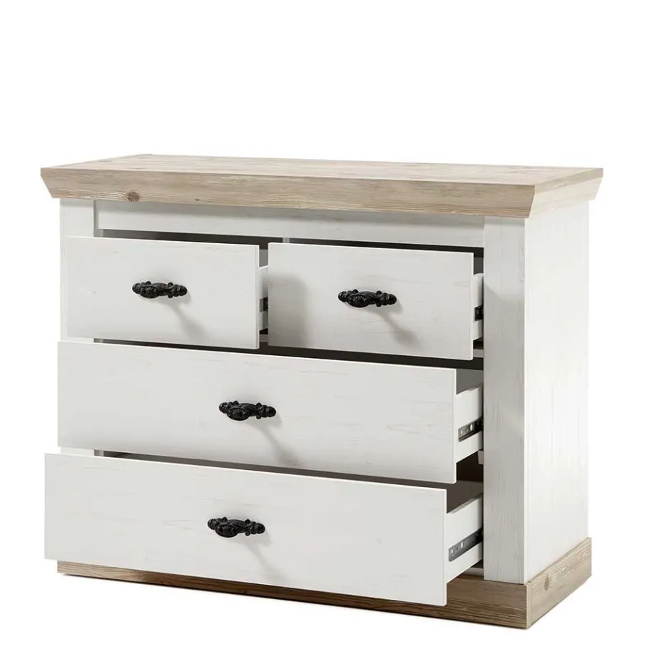 Die Kommode: Mit geräumigen Schubladen und einer Ablagefläche ist die Kommode perfekt für die Aufbewahrung von Schals, Handschuhen und anderen Accessoires geeignet.