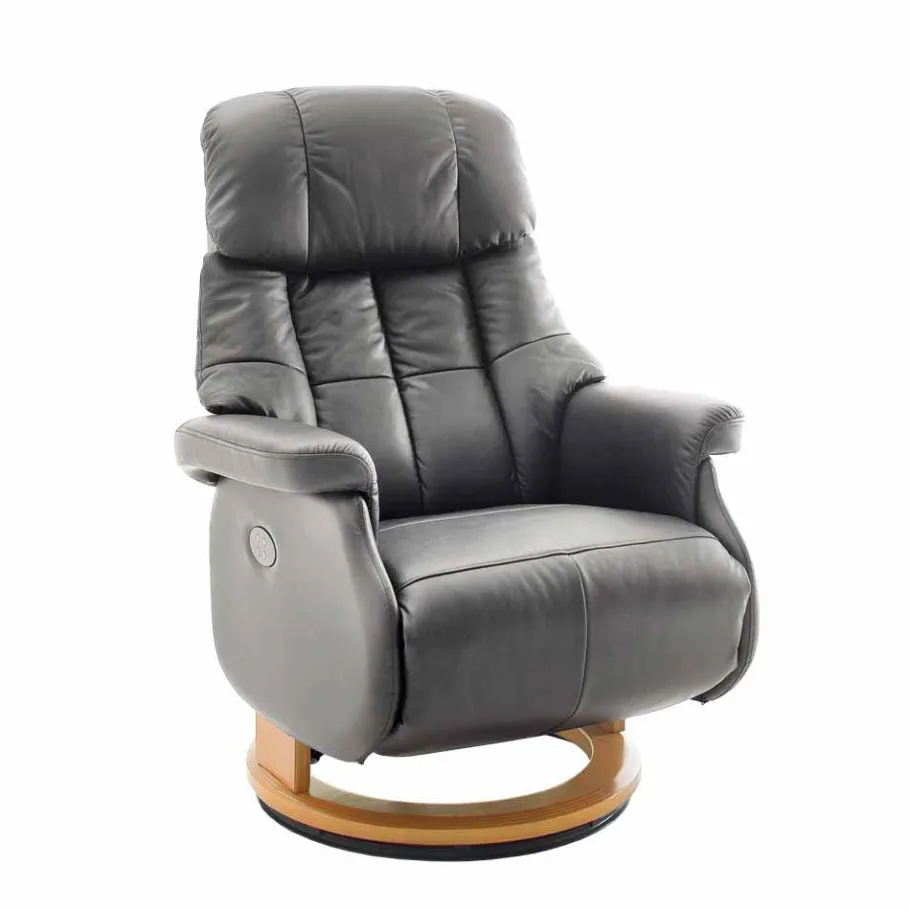Der „Jersy“ Sessel beeindruckt nicht nur mit seiner Optik, sondern auch mit seiner Funktionalität. Die Rückenlehne und das Fußteil sind elektrisch verstellbar, sodass Sie Ihre ideale Liegeposition mühelos einstellen können. Mit einem Fußgestell aus Formholz in Naturfarben lackiert und einem 360 Grad drehbaren Drehteller auf einem Drehkranz aus Kunststoff mit Metall ist dieser Sessel äußerst flexibel. Er kann frei im Raum aufgestellt werden, da der Rücken ebenfalls bezogen ist. Die moderne Steppnähte im Sitz- und Rückenbereich verleihen ihm ein zeitgemäßes Design, das zum Entspannen einlädt.