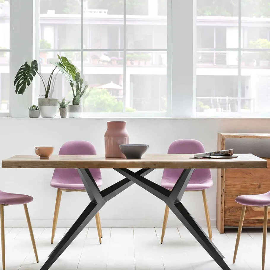 - Stabiler Esstisch in Akaziefarben und Antikschwarz