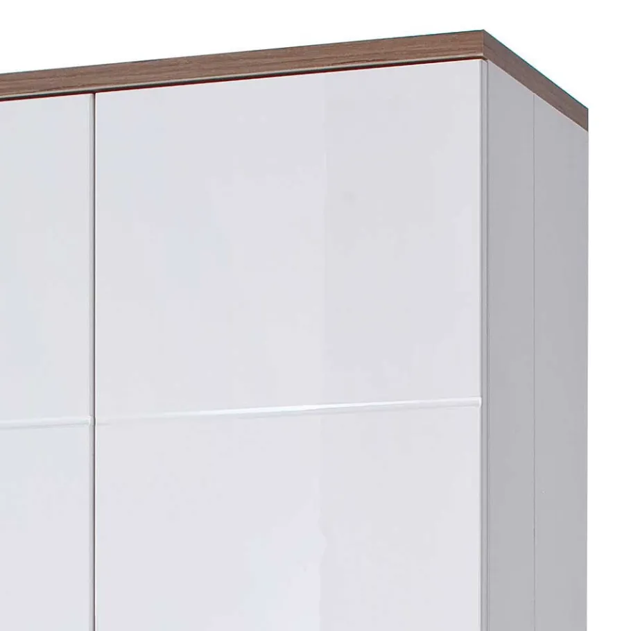 Die Front der Vitrine „Icadro“ besticht durch ihr hochglänzendes Weiß, während der Korpus in mattem Weiß foliert ist. Die Absetzungen, die Deckplatte und der Sockel sind mit einem Holzdekor in Balkeneiche foliert, was nicht nur für eine natürliche Note sorgt, sondern auch ein harmonisches Kontrastspiel mit dem Weiß schafft. Das zweifarbige Design verleiht dieser Vitrine eine zeitlose Eleganz und macht sie zum Blickfang in Ihrem Wohnraum.