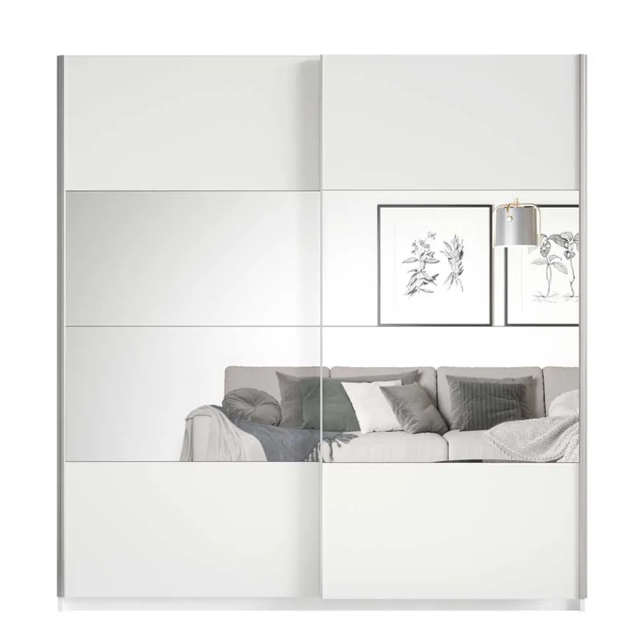 Mit klaren Linien und einem harmonischen Zusammenspiel aus Weiß und Spiegelglanz fügt sich „Juleste“ nahtlos in moderne wie klassische Einrichtungsstile ein. Die breiten Spiegelblenden an den Schiebetüren verleihen dem Schrank nicht nur optische Größe, sondern reflektieren das Licht sanft im Raum und schaffen so eine einladende, luftige Atmosphäre. Wer Eleganz und Funktionalität in einem sucht, findet hier den idealen Begleiter für viele Jahre.